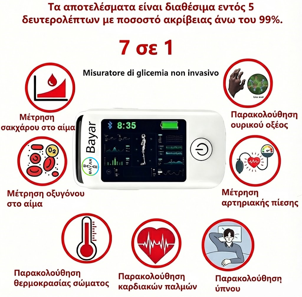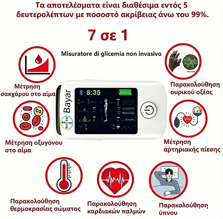 Για να βοηθήσει περισσότερους ανθρώπους να αποτρέψουν τον διαβήτη, η Bayer Healthcare αφιέρωσε πέντε χρόνια στην ανάπτυξη αυτού του μη επεμβατικού, πολυλειτουργικού μετρητή γλυκόζης αίματος 11 σε 1.